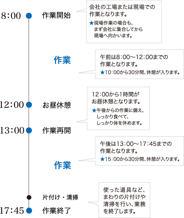 未経験社の場合、最初は施工技術者として入社しますが、技術の習得や個人の希望に応じてCAD設計や現場監理など、ステップアップしていくことが可能です。